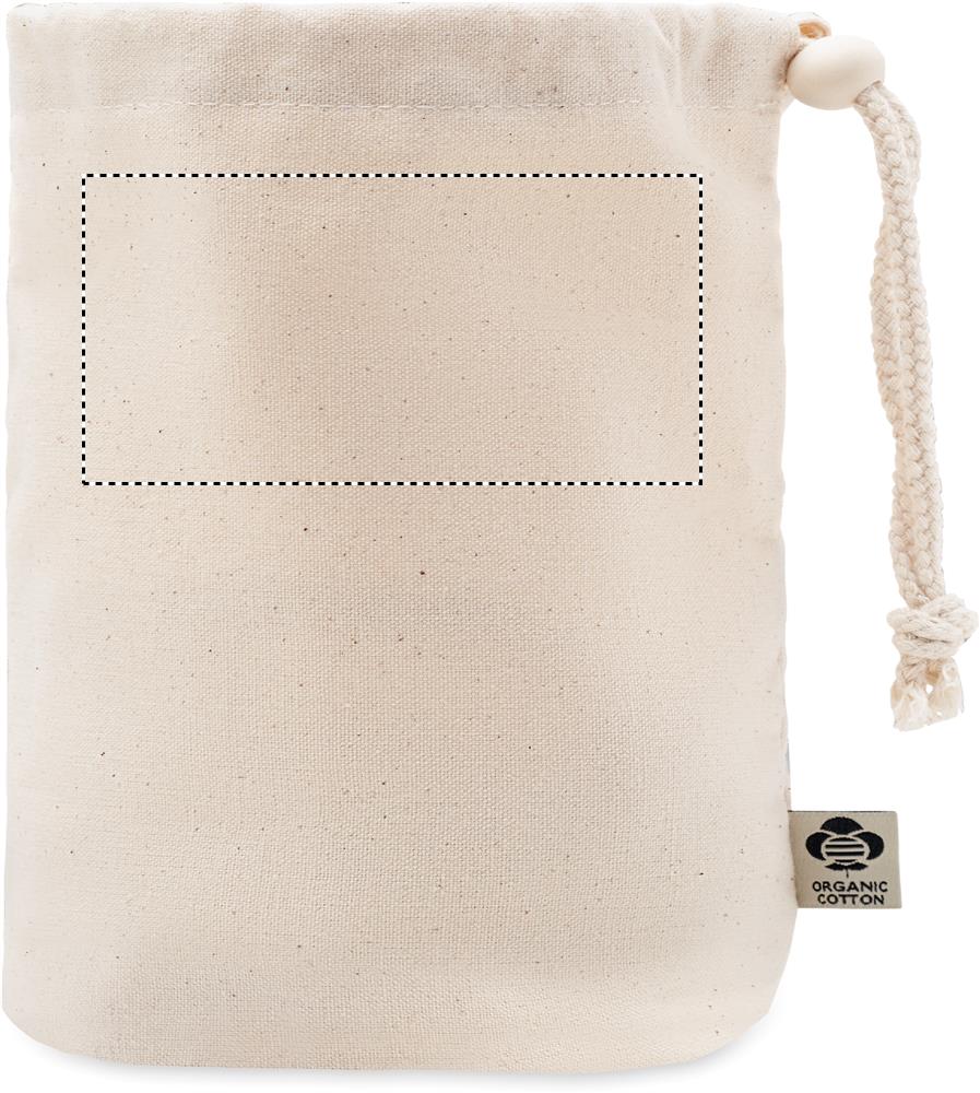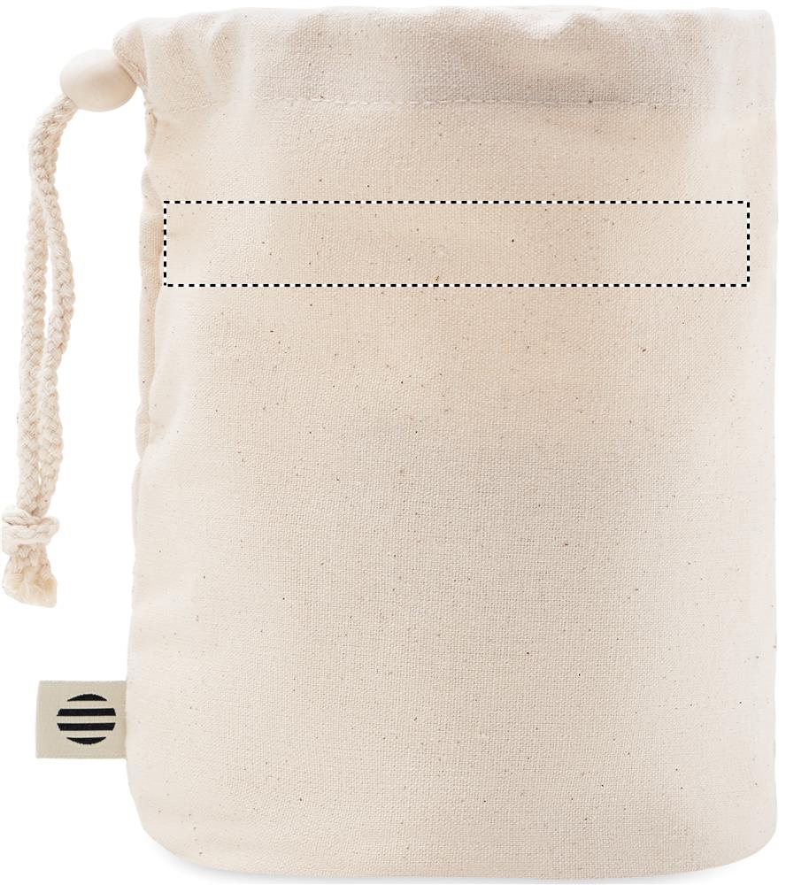 220 gr/m² pieni säilytyspussi orgaanisesta puuvillasta, puisella sulkimella.