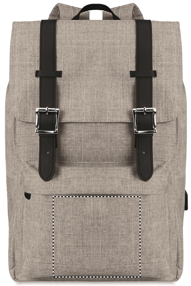 600D 2 sävyinen polyesteri reppu, 15 tuuman kannettavalle tietokoneelle ja USB latauskaapeli. Magneettinen suljin ja vetoketjullinen etutasku, pehmustetut olkaimet.