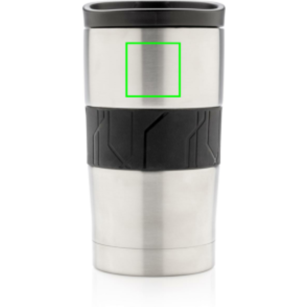 Tiivis, tyhjiöeristetty muki on valmistettu kaksiseinäisestä, ruostumattomasta teräksestä, ja siinä on silikonikahva ja liukukansi. Voidaan pestä astianpesukoneessa ja sopii useimpiin kahviautomaatteihin. Sisältö: 300 ml.