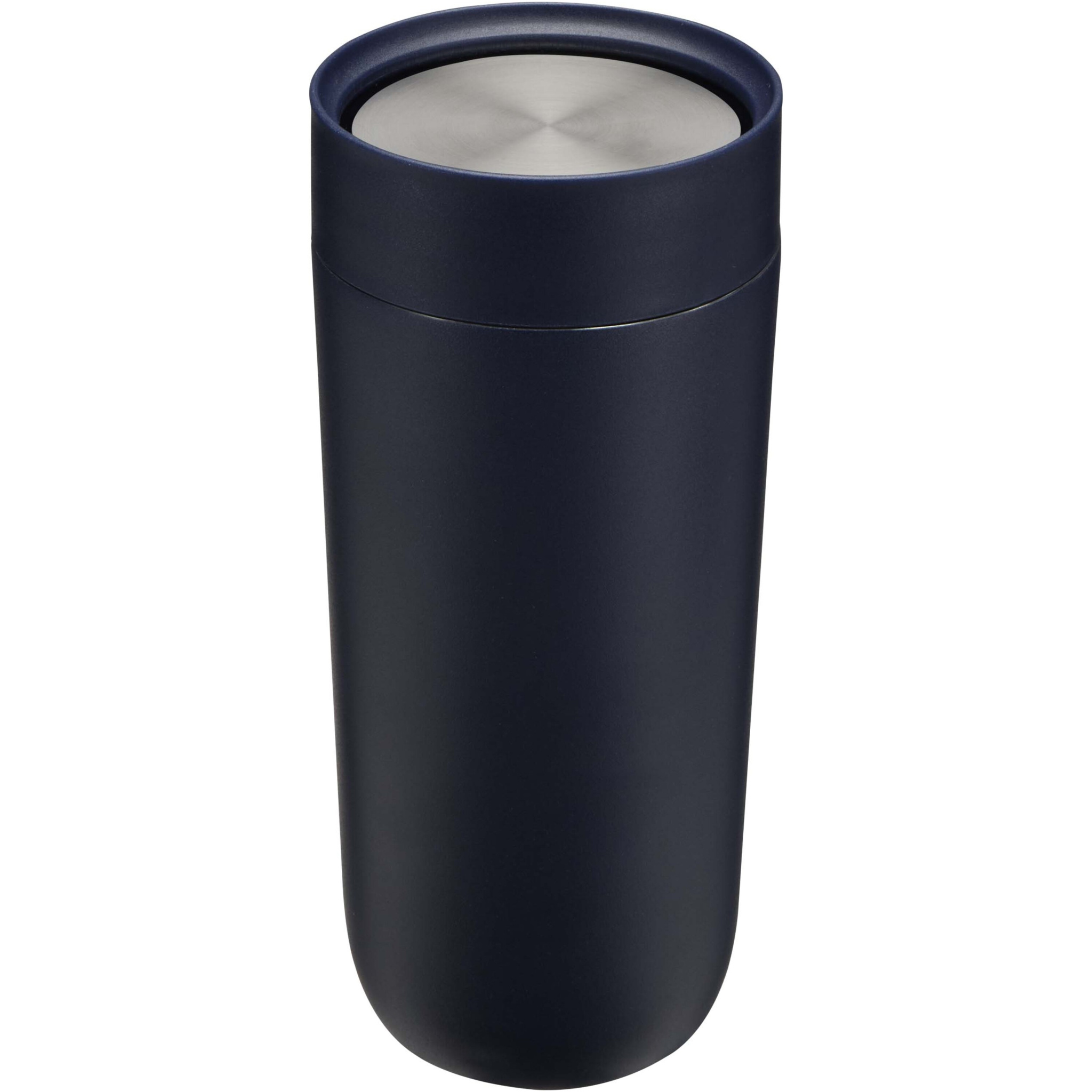 Aukščiausios kokybės skalbinių puodelis su patogiu nerūdijančio plieno stumiančiu atidarymo mechanizmu, leidžiančiu valdyti viena ranka. RCS sertifikuotas nerūdijančio plieno korpusas su patvaria elektrine danga. Dangtis pagamintas iš RCS sertifikuoto nerūdijančio plieno ir PP plastiko. Vario dengimas ir keraminis pamušalas. Tinka dažniausiai naudojamiems automobilių puodelių laikikliams. Išlaiko gėrimus 12 valandų karštus arba 24 valandas šaltus. Pateikta perdirbto kartono dovanų dėžutėje. Tūrio talpa: 350 ml.