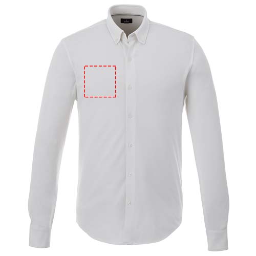 Savarankiško audinio apykaklė. Tamprus audinys. Reguliuojamas rankogalis su viena kloste. Užsegama apykaklė. Satininiai vamzdeliai vidinėje kaklo dalyje. Dažyti, kad atitiktų, graviruoti mygtukai. Austa pagrindinė etiketė.