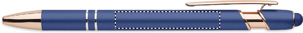 Perdirbto aliuminio rašiklis stumiamas rutulinis rašiklis su rožinio aukso detalėmis. Mėlynas rašalas.