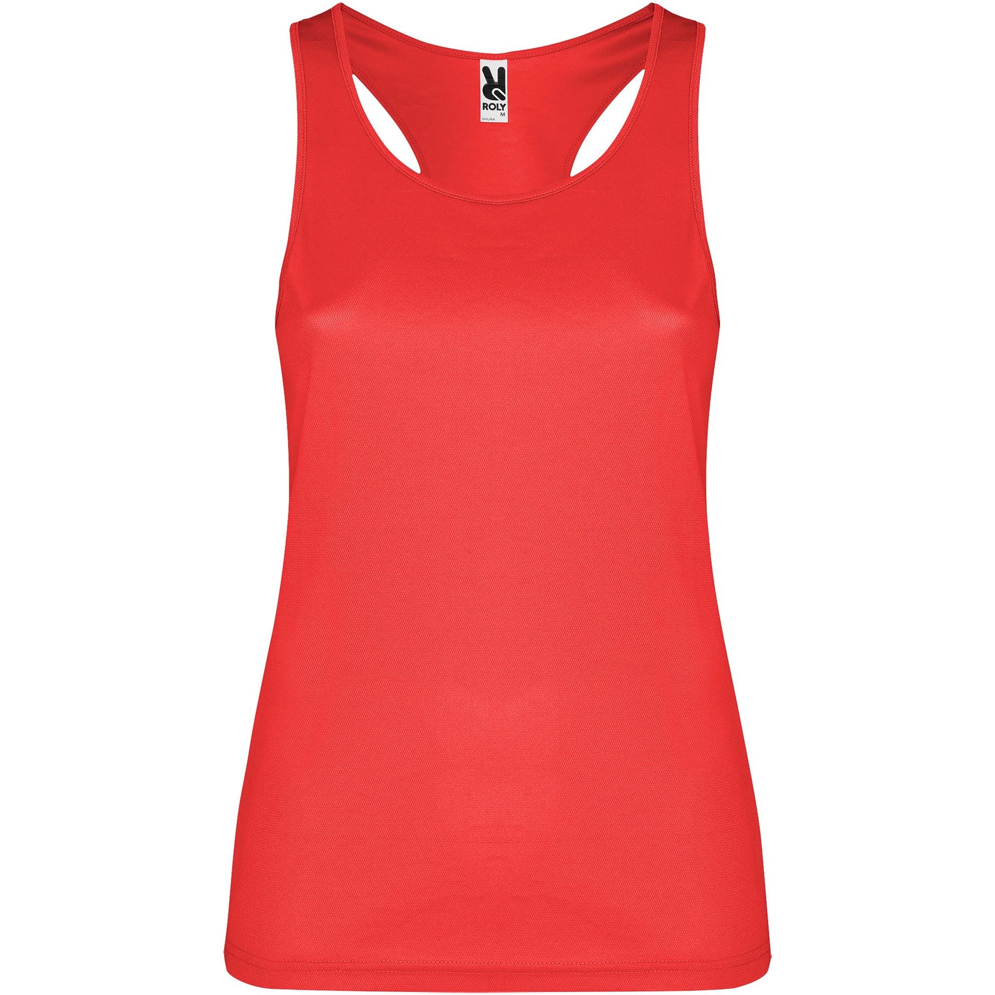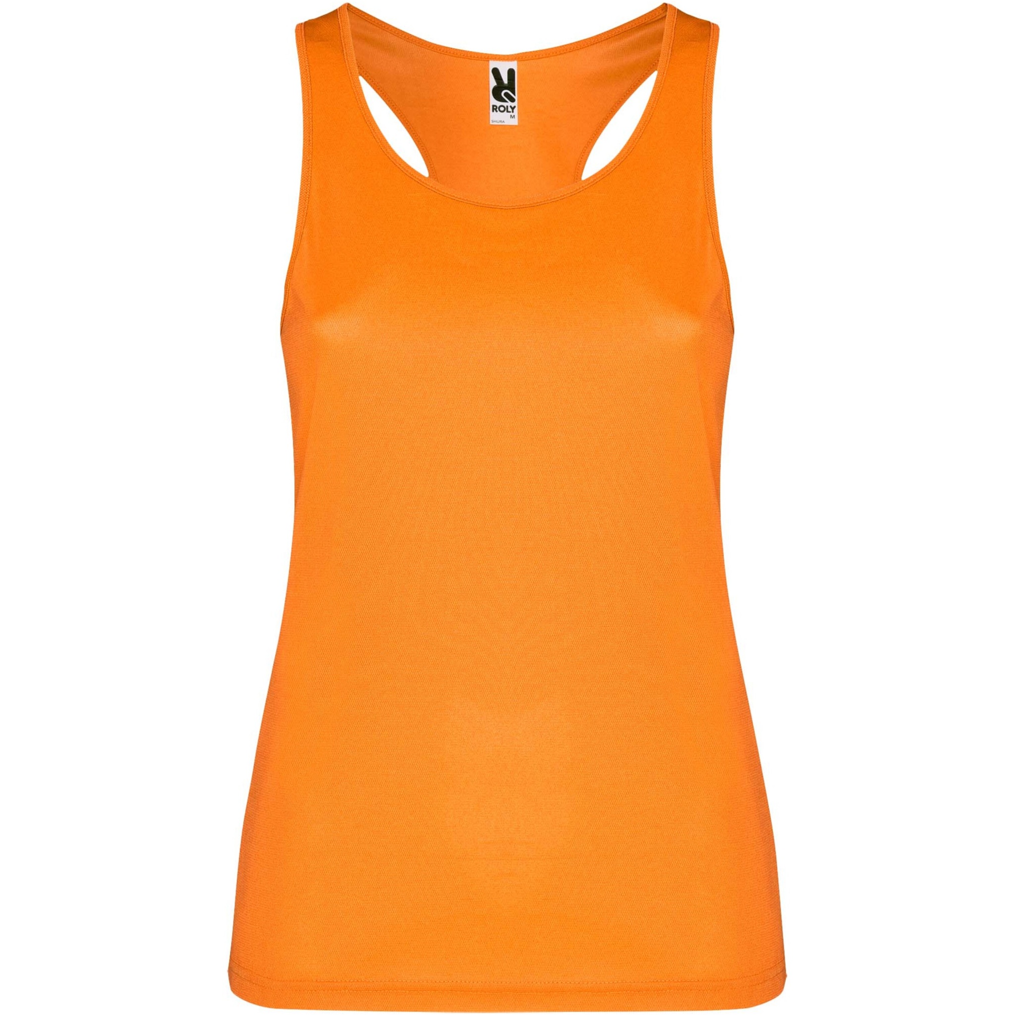 Techninis, kvėpuojantis, lengvai skalbiamas ir lengvai džiūstantis audinys. Ribuotos rankų angos ir iškirptė. Racerback ir šoninės siūlės. Nuimama etiketė.