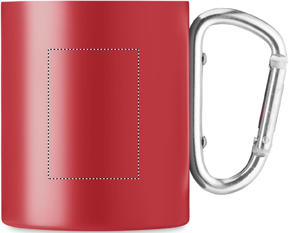 Divsienu nerūsējošā tērauda krūze, ar karabīnes rokturi. Tilpums: 300 ml.