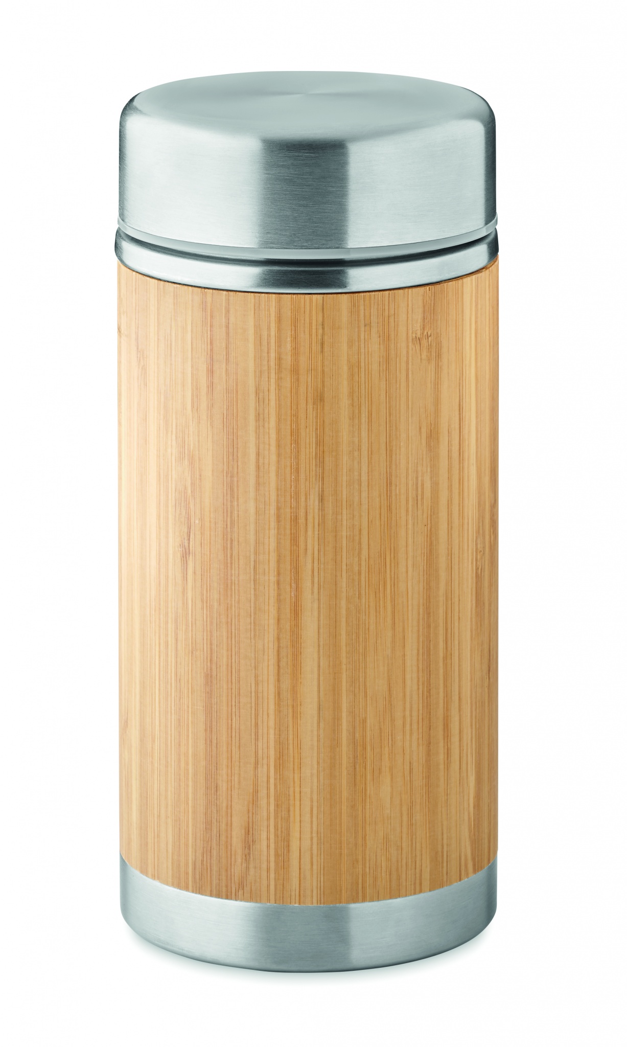 Divu sienu nerūsējošā tērauda izolēta pārtikas burka ar aizskrūvējamu bambusa apdari. Tilpums: 600 ml. Bambuss ir dabisks produkts, katrai precei var būt nelielas krāsas un izmēra atšķirības, kas var ietekmēt gala apdares rezultātu.