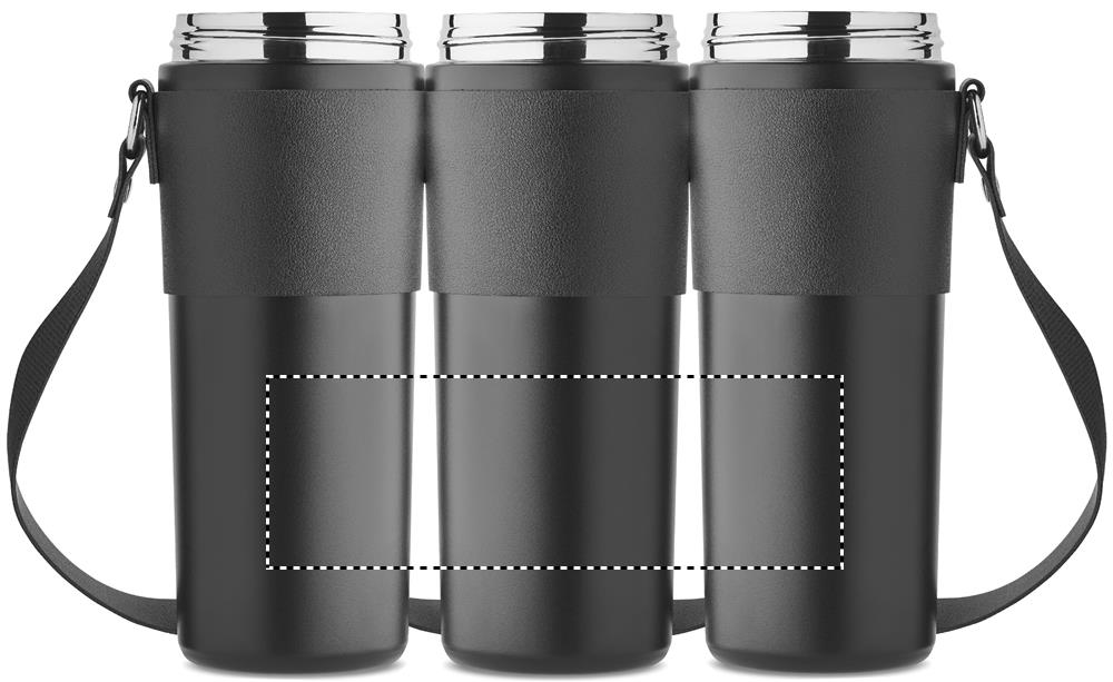 Divsienu nerūsējošā tērauda pulvera pārklājuma trauks ar PP vāku (2-in-1 salmu vāks) un ar PU pārnēsāšanas siksnu. Bez noplūdēm. Tilpums: 700 ml.