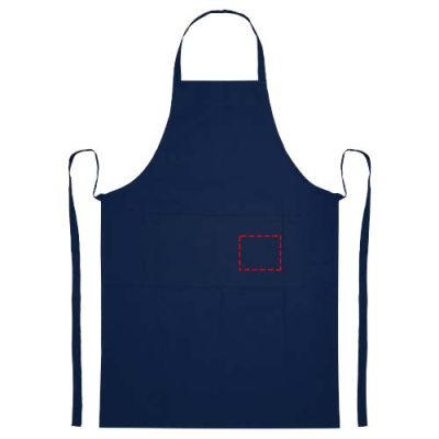 Ilgtspējīgs priekšauts, kas izgatavots no 200 g/m² organiskās kokvilnas. Aprīkots ar 2 blakus esošām kabatām, kuru kopējais izmērs ir 45 x 20 cm, un 1 metru garu sasienamu aizdari aizmugurē. Kakla siksnas garums: 55 cm.