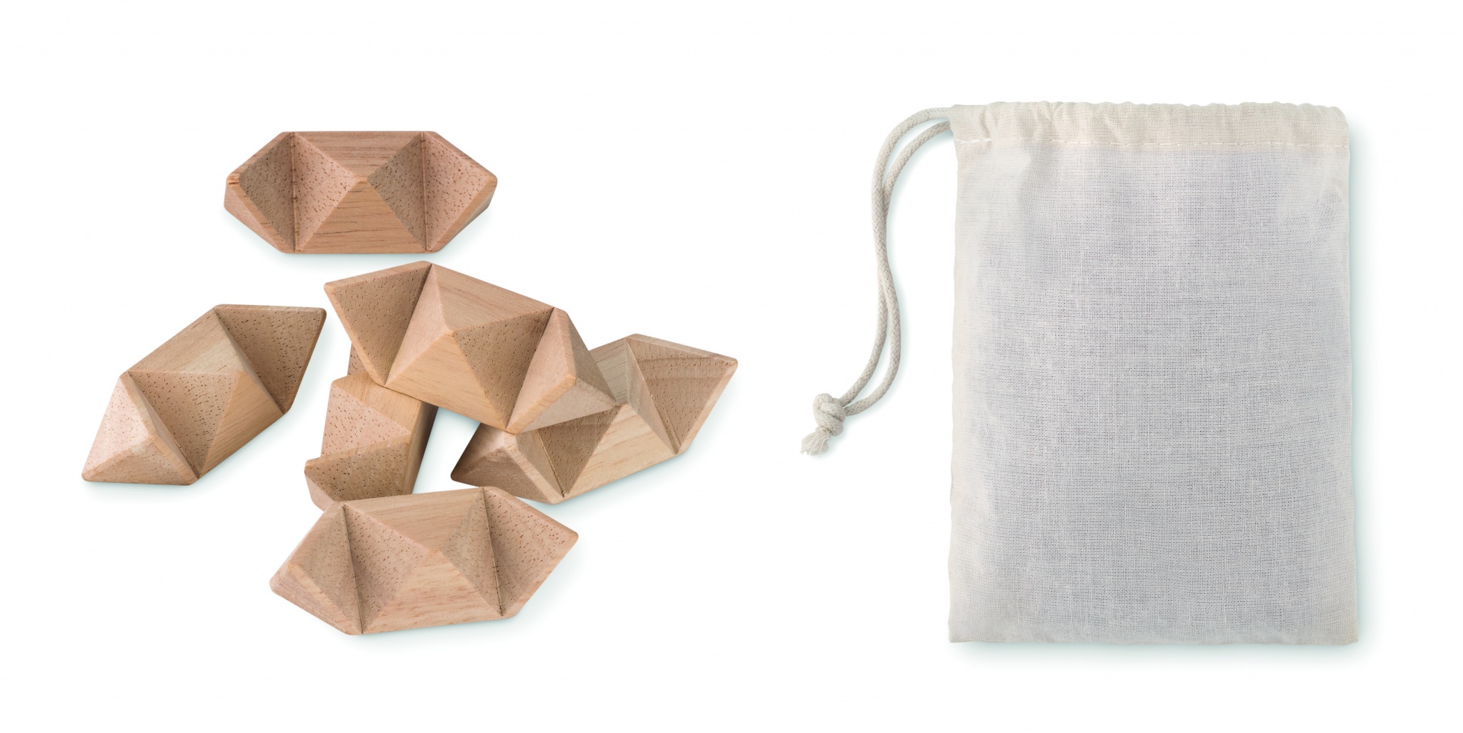 Koka prāta spēle zvaigznes formā. Prezentēts kokvilnas maisiņā.
