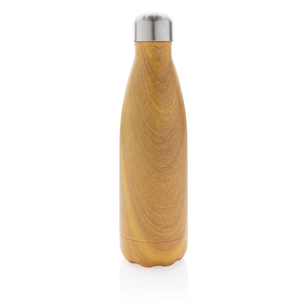 Бутылка из нержавеющей стали с вакуумной изоляцией и принтом под дерево, коричневый