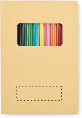 Children’s drawing set with 50 recycled paper sheets and 12 wooden colouring pencils. With kraft paper cover.