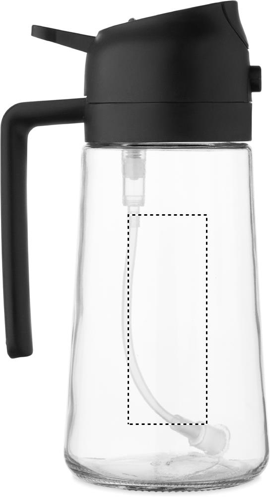 2-in-1 glass oil dispenser and sprayer with PP lid and PE straw. Capacity 450 ml.