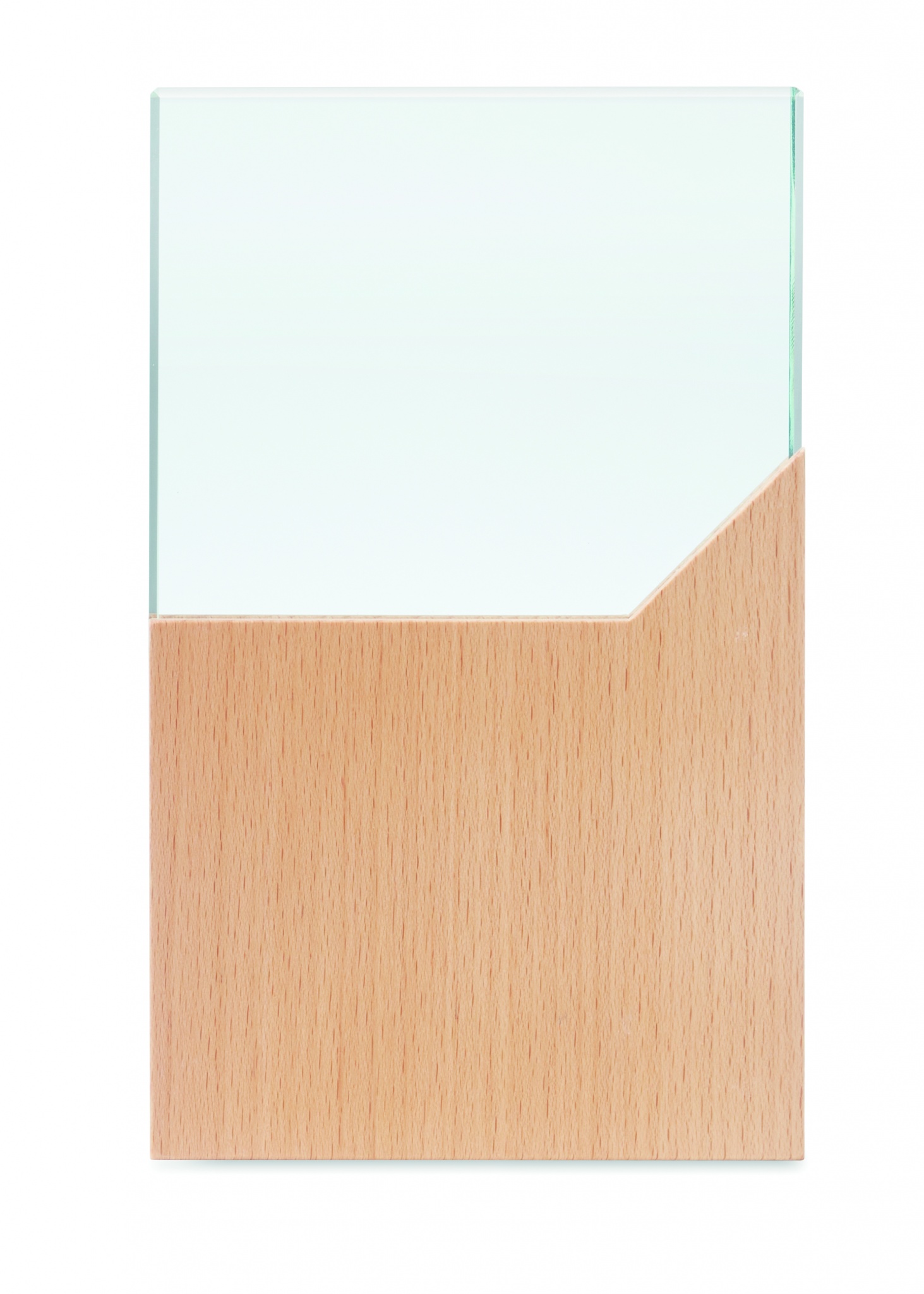 Хрустальная награда или наградная табличка на деревянном основании из бука в подарочной коробке.