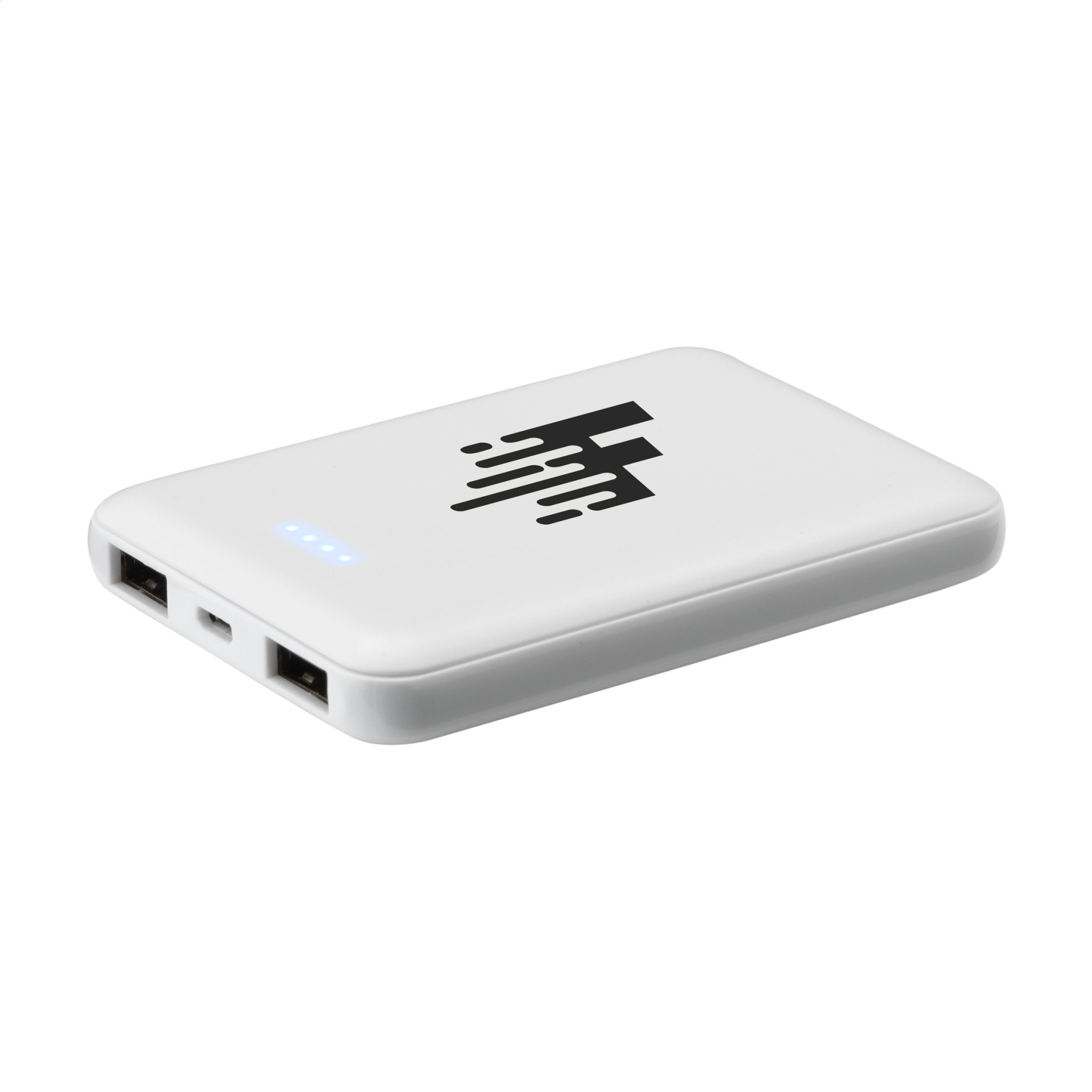 Маленький, легкий и очень мощный внешний аккумулятор со встроенным литий-полимерным аккумулятором (5000 мАч). Корпус изготовлен из переработанного АБС-пластика. Вход 5 В/2 А. Двойной выход: 2 x 5 В/2 А. Включает кабель для зарядки USB-C и руководство пользователя. Сертифицировано RCS. Общее количество переработанных материалов: 45%. Каждый предмет упакован в индивидуальную коробку.