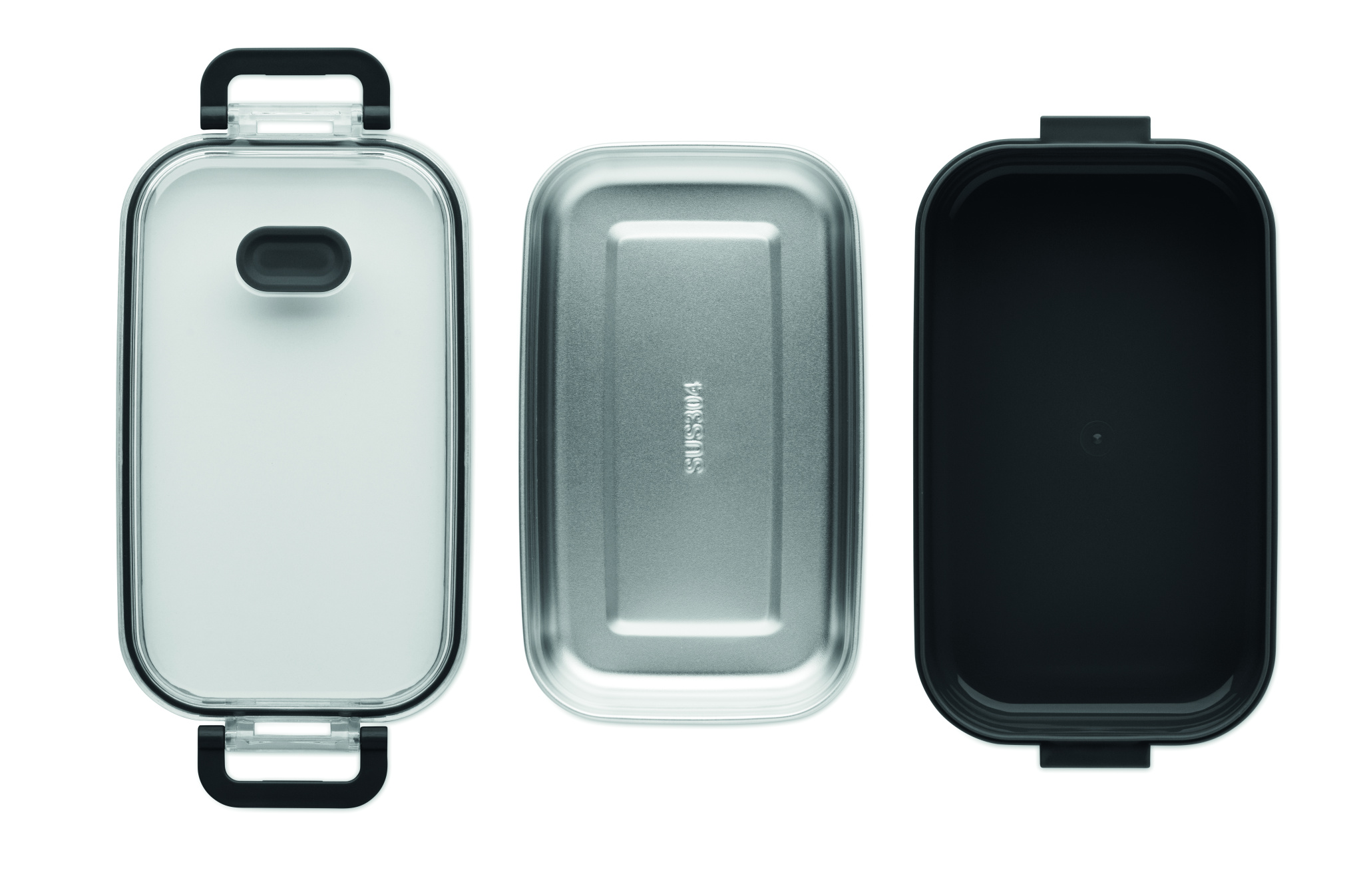 Lunch box made of PP with additional recycled stainless steel inner layer. Airtight AS lid that keeps food fresh and secure during transport. Capacity 750 ml without tray and 650 ml with tray.