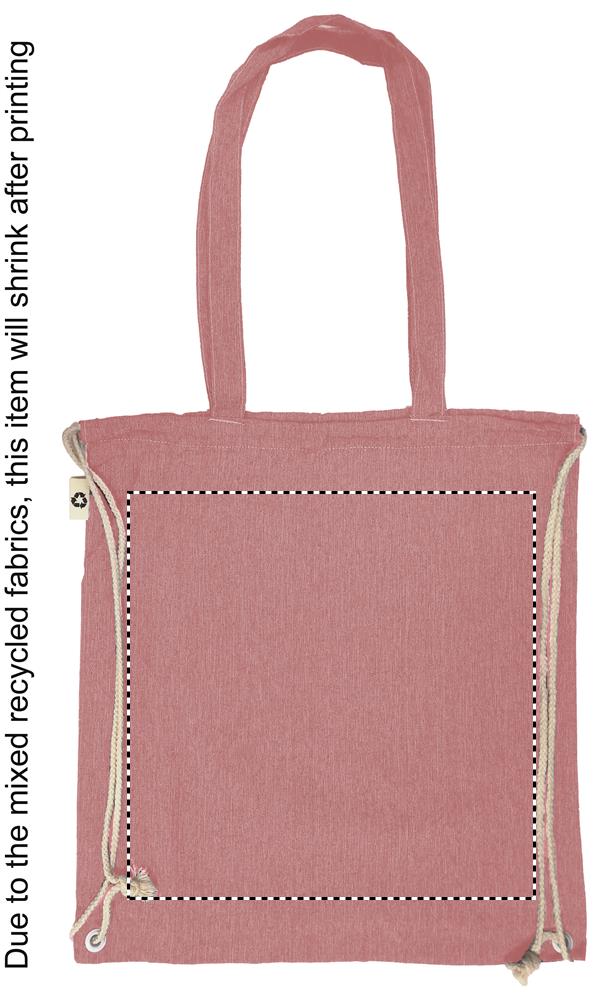 Рюкзак на шнурках и сумка шоппер с длинными ручками. Смесь переработанного коттона и переработанного полиэстера Прим 140 г/м². Этот пункт может уменьшиться после впечатывания.