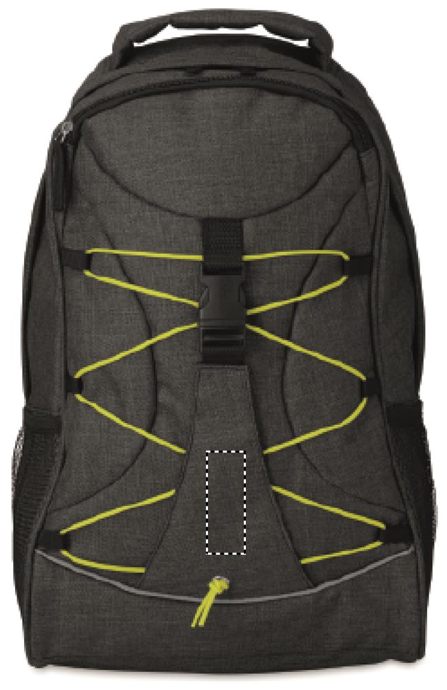 Рюкзак из полиэстера 600D с ярким контрастным шнурком и светоотражающей полоской на передней панели. Сетчатые карманы с обеих сторон.