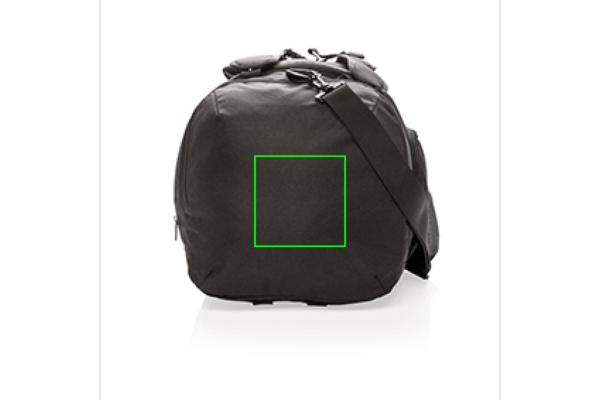 Легкая сумка 2 в 1 из полиэстера 1680D и 600D. Работает как рюкзак и дорожная сумка. Включает вместительное основное отделение с U-образной верхней застежкой-молнией, боковое отделение для обуви или грязной одежды и боковой карман на молнии. Сзади с карманом для бутылки и карманом быстрого доступа. Передний карман на молнии с 2 рукавами с защитой RFID. Регулируемые плечевые ремни для удобства и универсальности переноски. Не содержит ПВХ.