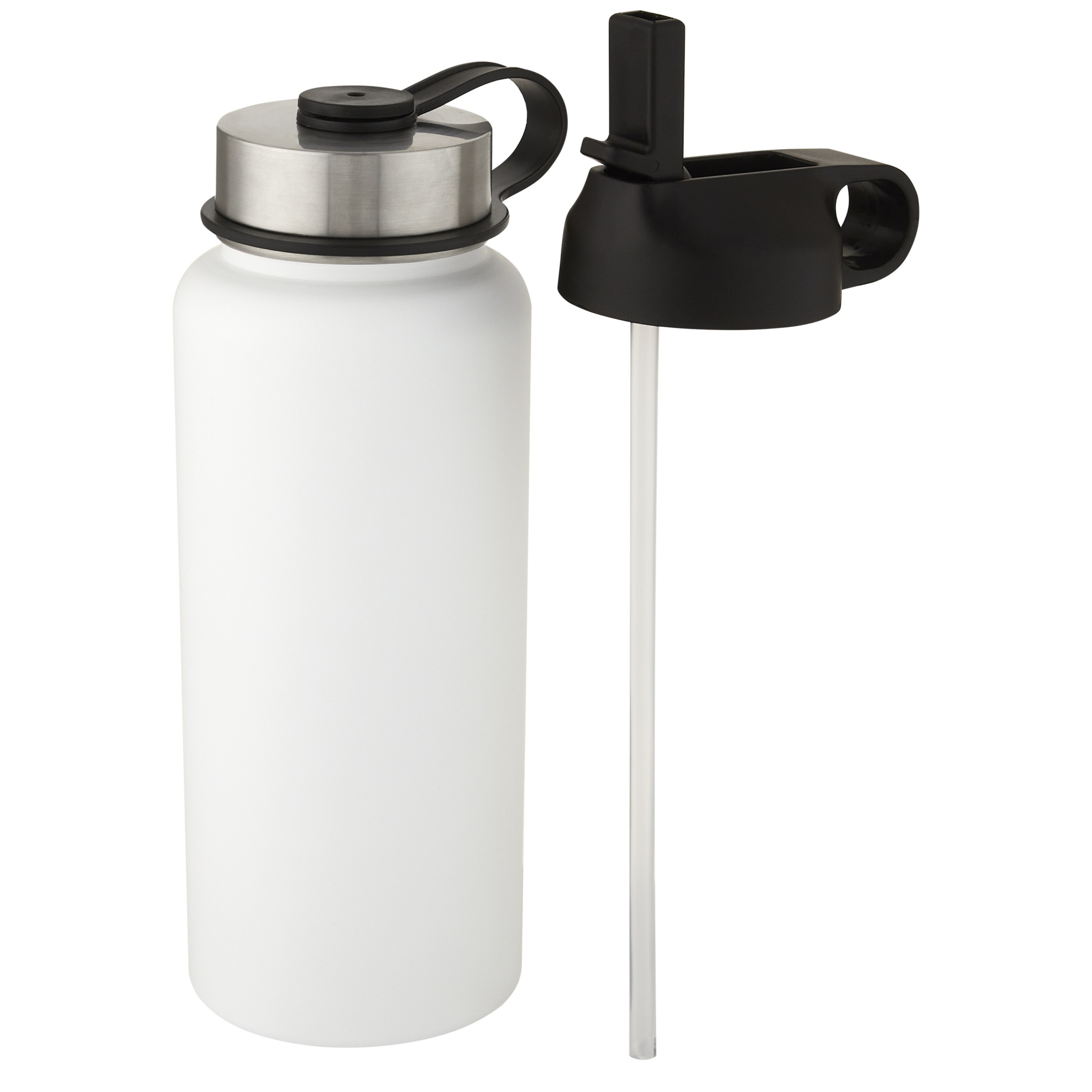 Спортивная бутылка «два в одном» из нержавеющей стали с двойными стенками, вакуумной медной изоляцией и двумя крышками: одна крышка с трубочкой для удобного питья и одна герметичная навинчивающаяся крышка с петлей для переноски. Изолированная конструкция из нержавеющей стали 18/8 предотвращает образование конденсата на наружной стороне бутылки, а современное порошковое покрытие обеспечивает чрезвычайную прочность. Широко открывающаяся горловина для удобного наполнения, разливания и мытья. Не содержит БФА, испытана и одобрена в соответствии с немецким законодательством о безопасности пищевых продуктов (LFGB). Проверена на содержание фталатов и одобрена для использования в соответствии с правилами REACH. Идеально подходит для кубиков льда. Объем: 1 литра. Рекомендуется мыть вручную. В подарочной коробке из переработанного картона.