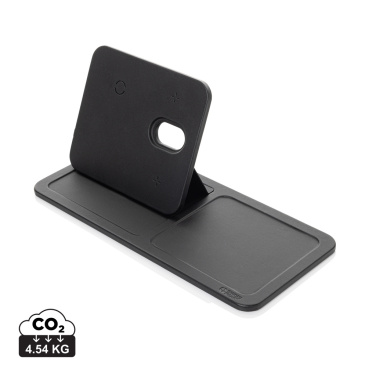 Роскошное складное беспроводное зарядное устройство 3 в 1 с подставкой для стола, изготовленное из переработанного полиуретана RCS. Общее содержание переработанных материалов: 5% от общего веса изделия. Сертификация RCS гарантирует полностью сертифицированную цепочку поставок переработанных материалов. Беспроводное зарядное устройство оснащено магнитным беспроводным зарядным устройством мощностью 15 Вт и дополнительным беспроводным зарядным устройством мощностью 5 Вт, подходящим для чехлов для наушников или других небольших беспроводных заряжаемых устройств, а также беспроводным зарядным устройством мощностью 2,5 Вт для смарт-часов (только для часов Apple). В комплект входит кабель TPE длиной 120 см. Упаковано в упаковку FSC® mix. Изделие и аксессуары на 100% не содержат ПВХ. Минимальное входное напряжение: 9 В/3 А для оптимального использования. Выходное напряжение: телефон: 9 В/1,1 А; 9 В/1,67 А/(15 Вт), наушники: 5 В/1 А (5 Вт), часы: 5 В/0,5 А.
