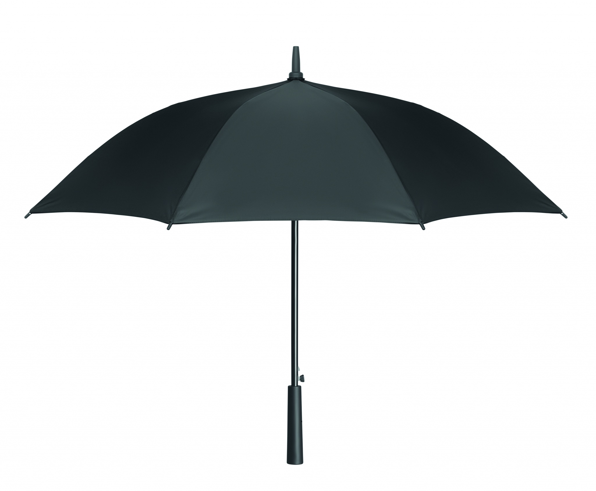 23-дюймовый ветроустойчивый зонт полуавтомат из эпонжа 190T с каркасом из стекловолокна, черным стержнем и пластиковыми наконечниками. Ручка из пластика с резиновым покрытием. Ручное закрытие
