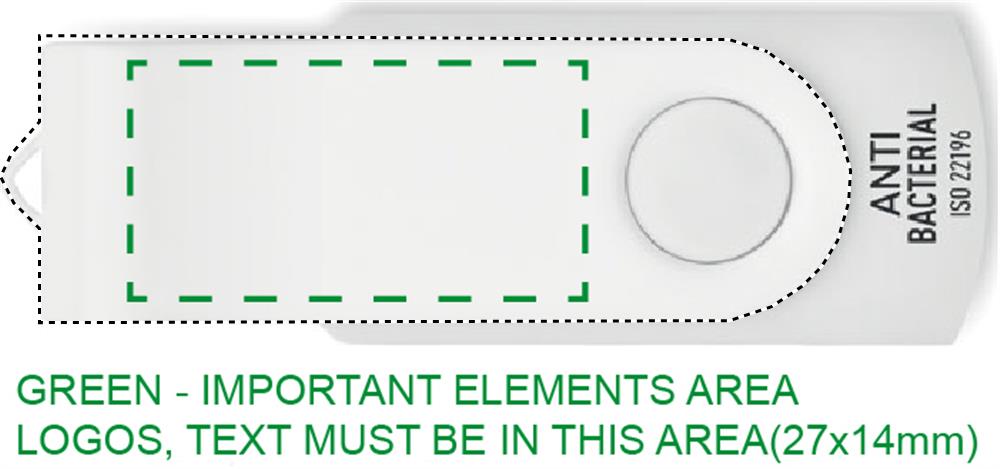 2.0 USB minne 16GB med antibakteriell behandling. >Genom att vrida skyddshöljet kan minnet anslutas till USB port och direkt användas. ISO 22196.