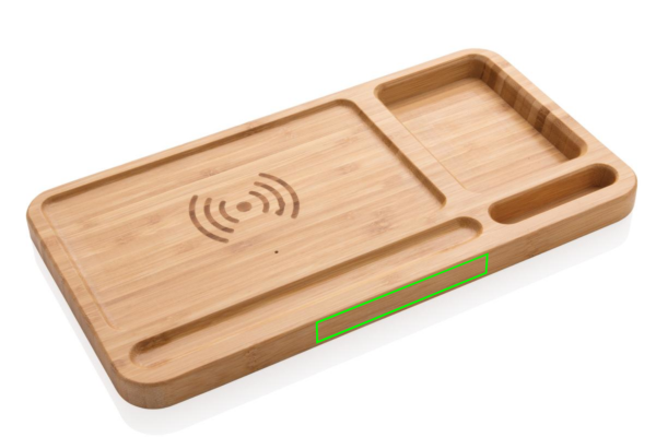 Logotrade reklamprodukter bild: Bambu skrivbordsorganisatör 5W trådlös laddare