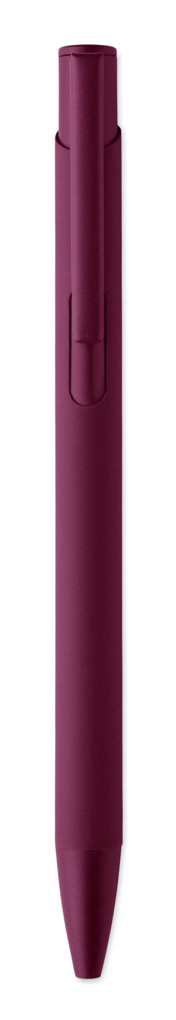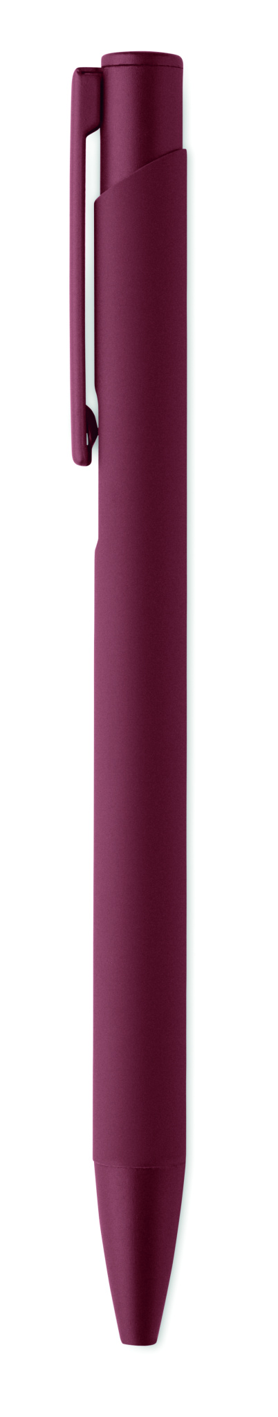 Tryckpenna av återvunnen aluminium med järnklips och färgad gummiklädd kropp. Blått bläck.