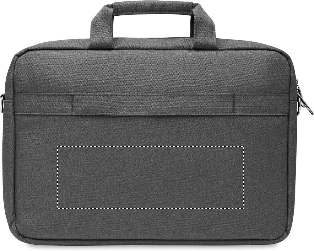 Dataväska för bärbar dator 15 tum i 600D RPET polyester. 2 inre huvudfack och stor frontficka med dragkedja. Den har en liten ficka med dragkedja. Avtagbara och justerbara axelremmar. Trolleyhållare på baksidan.