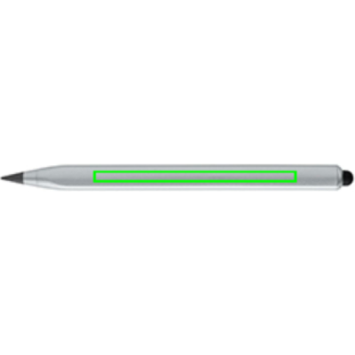 Modern infinity-penna tillverkad av RCS-certifierad återvunnen aluminium. Totalt återvunnet innehåll: 40% baserat på total produktvikt. RCS-certifiering garanterar en helt certifierad leveranskedja för de återvunna materialen. Triangelformad kropp med en sida med CM-angivelse och en sida med tum. Traditionella träblyertspennor skriver bara upp till cirka 200 meter, men denna träfria infinity-penna har en skrivlängd på upp till cirka 20.000 meter då den använder en grafitspets för att producera en grafitlinje. Den skriver inte bara som en penna, utan markeringarna kan också raderas. Den fungerar genom att lämna en grafitlinje på pappret precis som en vanlig traditionell träblyertspenna, men den slits så långsamt att den håller längre än 100 traditionella träblyertspennor! Med touchpoint för att manövrera den mobila enheten.Levereras i FSC®-mixförpackning.