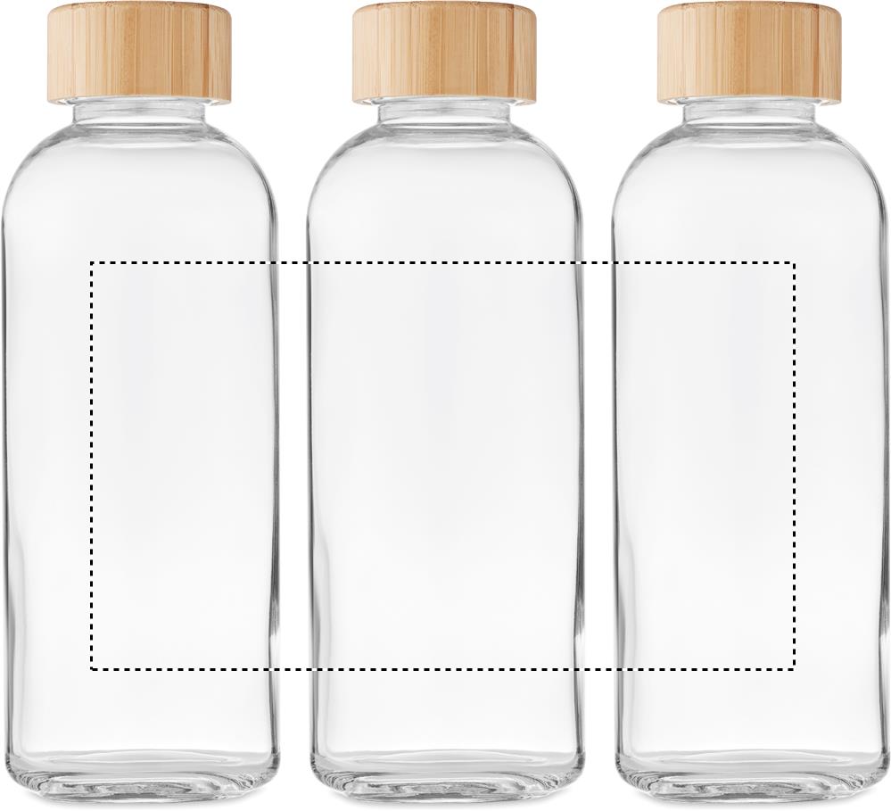 Glasflaska med lock av bambu. Kapacitet 650 ml. Flaskan tål diskmaskin utan lock. För diskmaskinsäker märkning välj lasergravyr. Läcker inte.