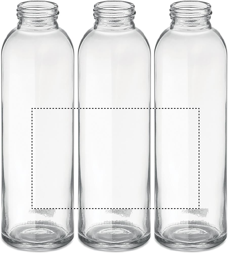 Flaska i glas med fodral av jute/neopren. Capacity: 500 ml. Flaskan klarar maskindisk otryck. Ej lämplig för dryck med kolsyra. Läckagefritt.