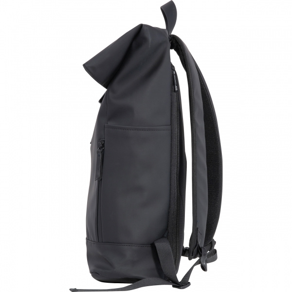 Laptopryggsäck tillverkad av polyuretan (PU) för bärbara datorer på 15–16 tum. Den har två fack med dragkedja framtill, två sidofickor, ett stort huvudfack med nät- och dragkedja, ett vadderat laptopfack baktill, vadderade axelremmar, ett bärhandtag och en justerbar stängning för huvudfacket. Din logotyp är applicerad på den nedre tredjedelen av framsidan.