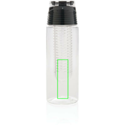Trendig vattenflaska med kolv för att smaksätta ditt vatten med din favoritfrukt eller örter. Flaskan är gjord av tritan som gör den reptålig och extra hållbar. Lock av ABS med ett låssystem så att du kan ta med dig ditt smaksatta vatten vart du än går. Kapacitet 700 ml.