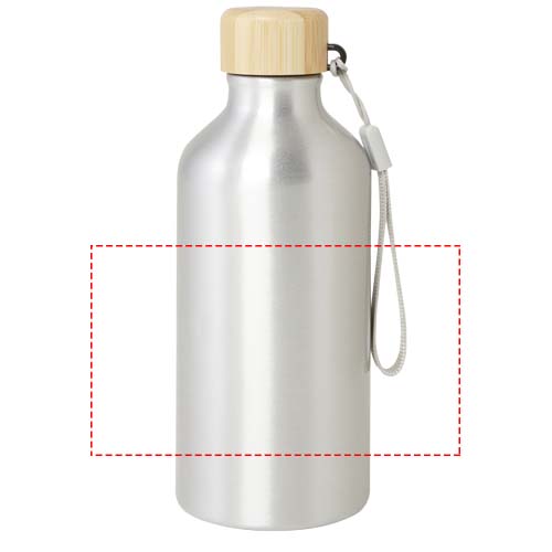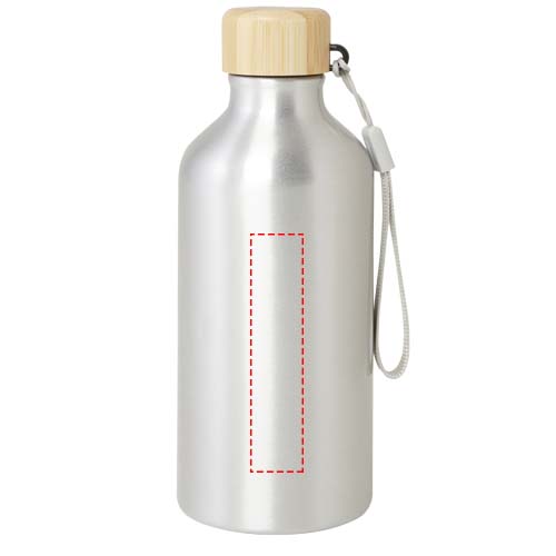 Vattenflaska av RCS-certifierad återvunnen aluminium med ett snyggt lock av bambu. Denna lätta flaska med enkelvägg levereras med en rem som gör den lätt att bära med sig. Bambun kommer från hållbara, miljömässigt och socialt ansvarsfulla källor. Kapaciteten är 500 ml. Endast handdisk.