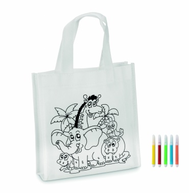Non-woven mini shoppingväska för de minsta med 5 pennor för färgläggning. 80 g / m².