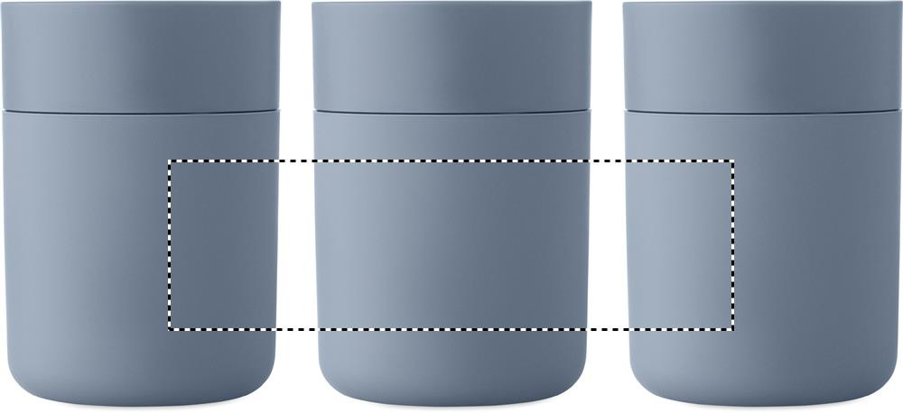 PP-glas med silikonskydd och skjutbart lock i PP. Volym: 330 ml. Eftersom det här är en mugg med enkel vägg kan värmeöverföring fortfarande ske.