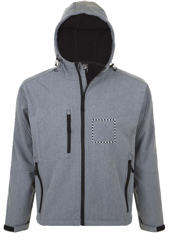 SOL'S REPLAY HERR, SOFTSHELL MED HUVA HERR, 94 % polyester, 6 % elastan, Fodrad med fleece : 100 % polyester, 3 lager, 8000 mm vattentätt membran med andningsförmåga SOFTSHELL 340, 2 sidofickor med dragkedja och 1 bröstficka med dragkedja, Justerbar dragsko i midjan, Justerbara ärmslut med självhäftande knäppning, Huva med dragsko för matchande storlekar, se storlekstabellen i avsnittet om produktdokumentation.