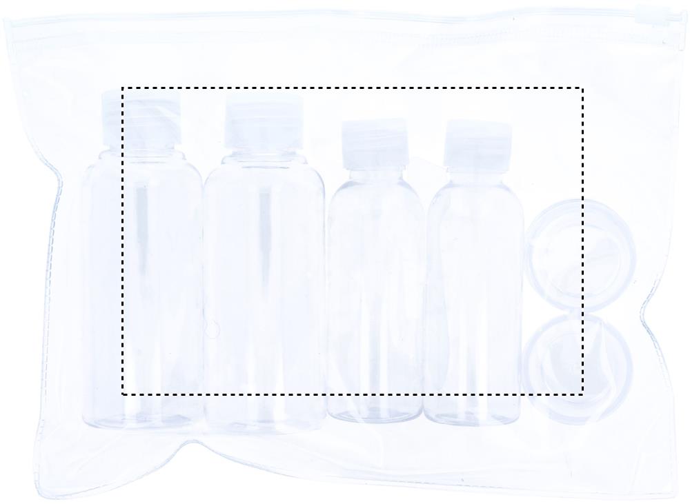 Resefodral med 6 tomma flaskor. Flaskorna är flygplansgodkända som handbagage. Fodralet är återförseglingsbart för TSA-vänligt resande.