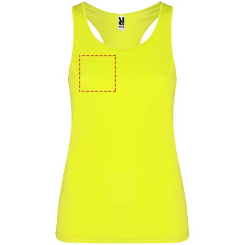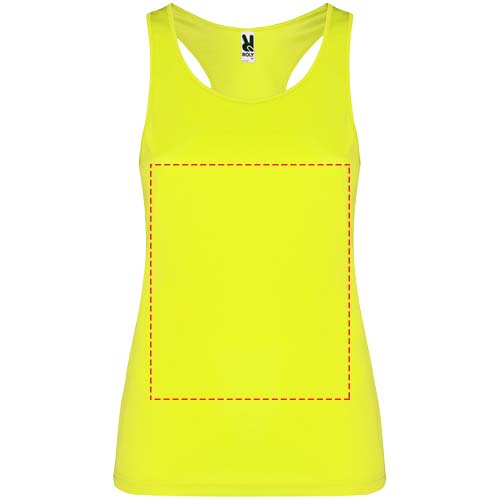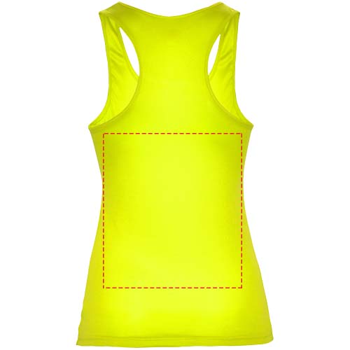 Tekniskt och andningsbart tyg som är lätt att tvätta och torka. Ribbade ärmhål och halsringning. Racerback och sidsömmar. Avtagbar etikett.