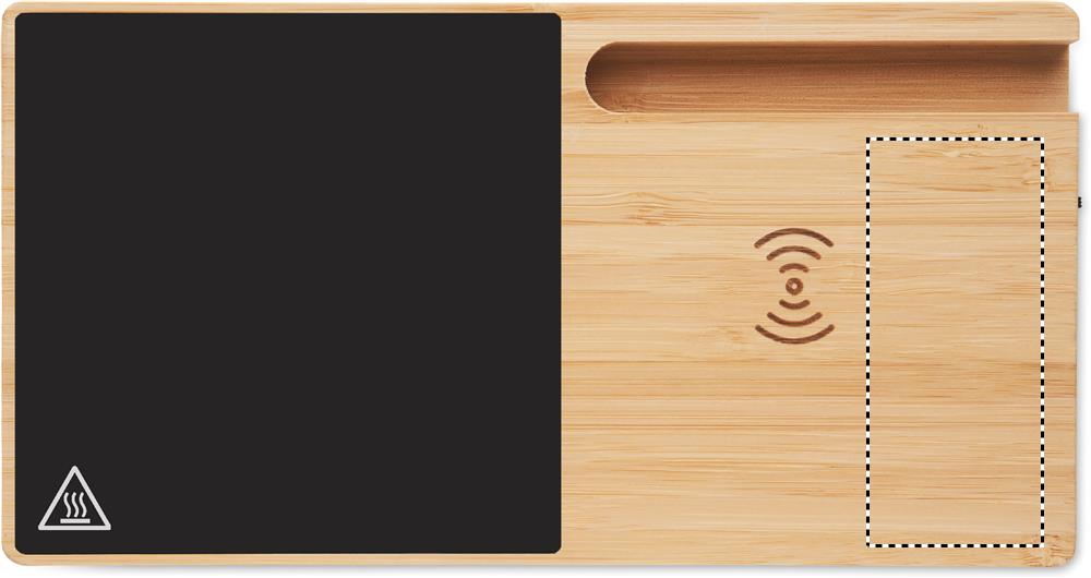 Trådlös laddare i bambu med mugghållare och telefonställ. Anslut enheten till din dator, placera din smartphone på den och låt den laddas. Utgång: DC 9V/1,67A (15W). Kompatibel med senaste Androids, iPhone® 12, X och nyare.