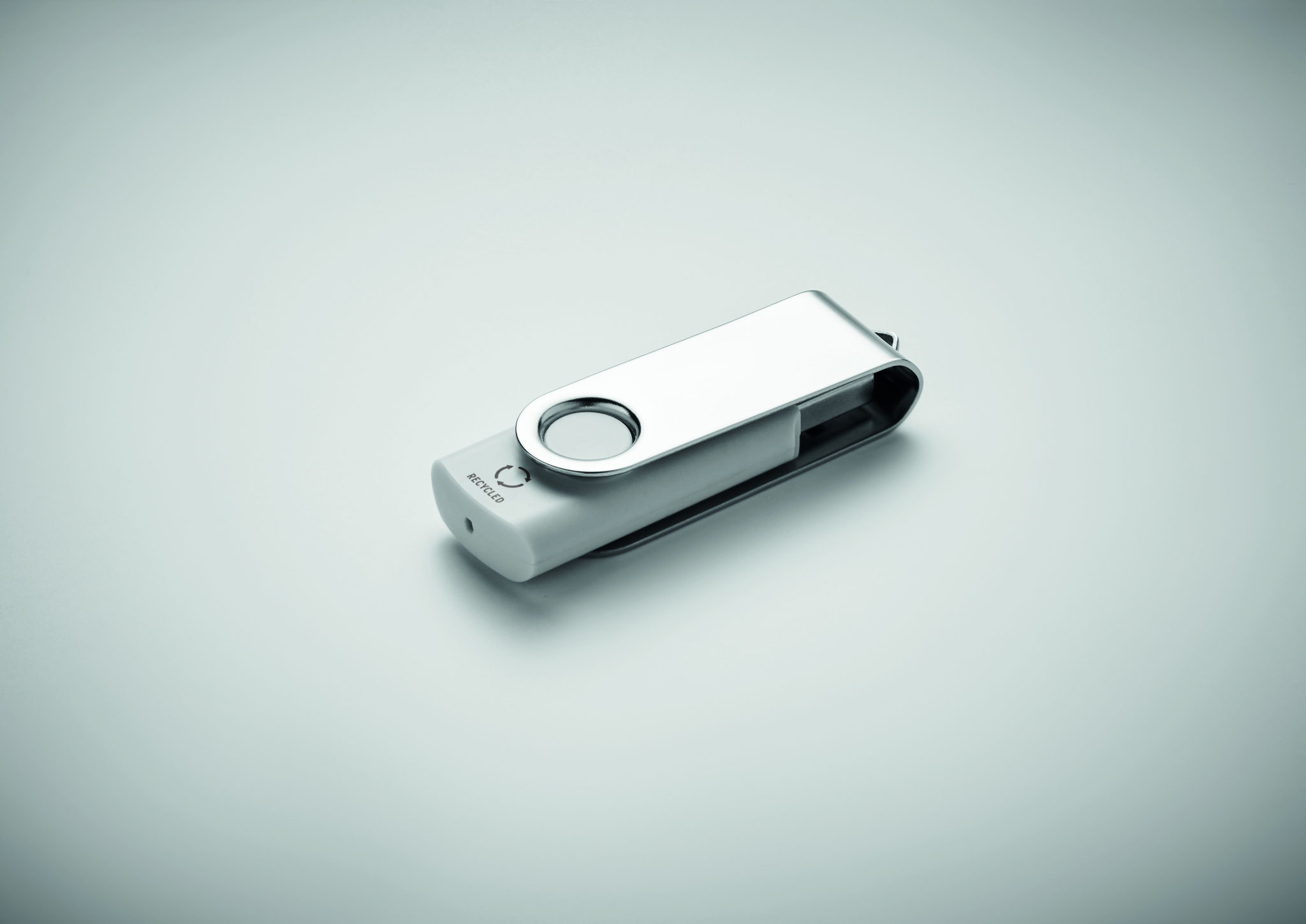 16 GB 2.0 USB-minne med skyddande hölje av återvunnen ABS i vit finish. Vrid om locket och anslut till USB-porten för att börja använda den.
